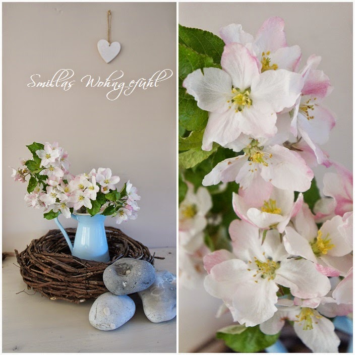 Der Apfelzweig ist klasse, der sieht in dem blauen Krug richtig romantisch aus.