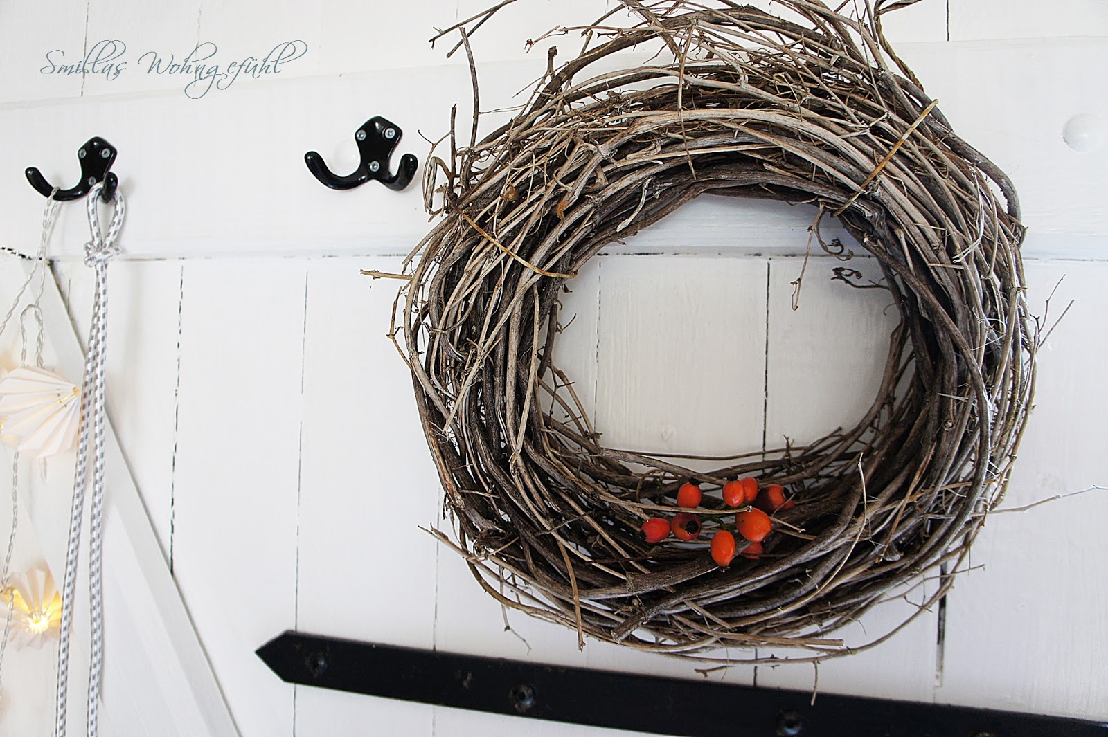 Die Decke finde ich toll, aber mir gefallen auch die paar Hagebutten in dem Kranz. Das ist ein schöner Hingucker.