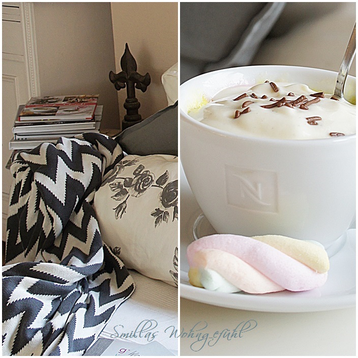 Den werde ich aber mal nachmachen…ich liebe Marshmallows! Die Decke gefällt mir gut…ich liebe solche Strickdecken!