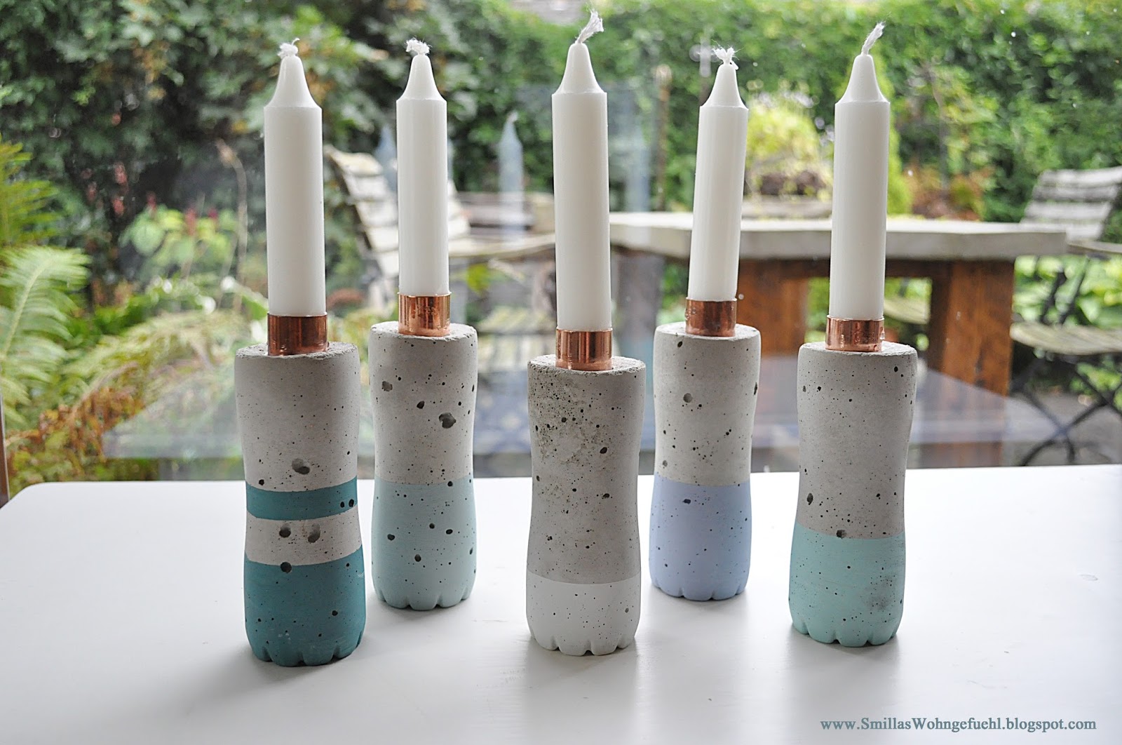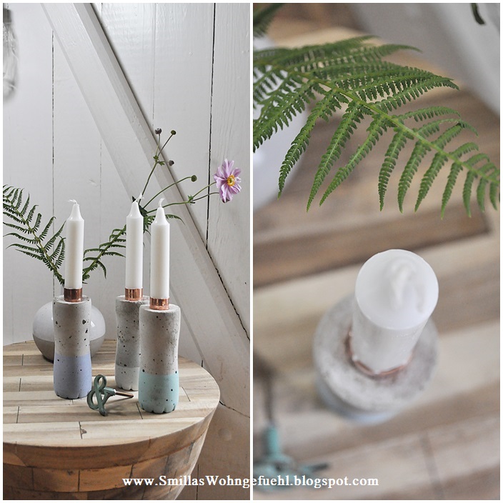Sehen richtig edel aus, deine Kerzenständer!Ich finde die Kombination aus Beton, Kupfer und den Pastellfarben super!